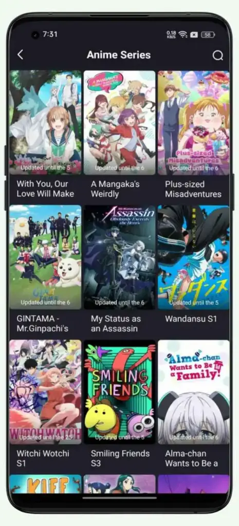 Al abrir la aplicación, verás los iconos de búsqueda e historial situados en la esquina superior derecha de la pantalla. Justo debajo, un menú horizontal muestra varias categorías para facilitar la navegación, entre las que se incluyen Recomendadas, Películas, Series de televisión, Niños, Animes y Zona para adultos. Al desplazarte hacia abajo en la página de inicio, aparecerá una selección de contenido más personalizada. Encontrarás secciones seleccionadas, como K-Dramas, Anime asiático, Películas de Netflix, Series de Netflix y Reality-TV, que ofrecen una mezcla de títulos populares y de tendencia para satisfacer los gustos de todos los espectadores.